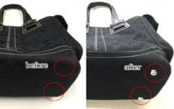 2015年8月11日 / 最終更新日 : 2021年3月8日 oshare-koubou お直しギャラリー バッグ底鋲取り付け バッグの底部分は擦れ、ヤブレやすい部分です。長持ちさせる方法として底鋲取り付けをオススメします。本体部分を保護してくれます。
