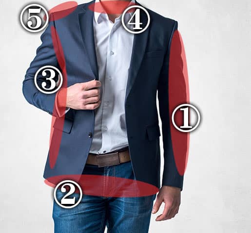 古いデザインのジャケットの肩幅、身幅を詰めることで、すっきりした印象に変えることができます。