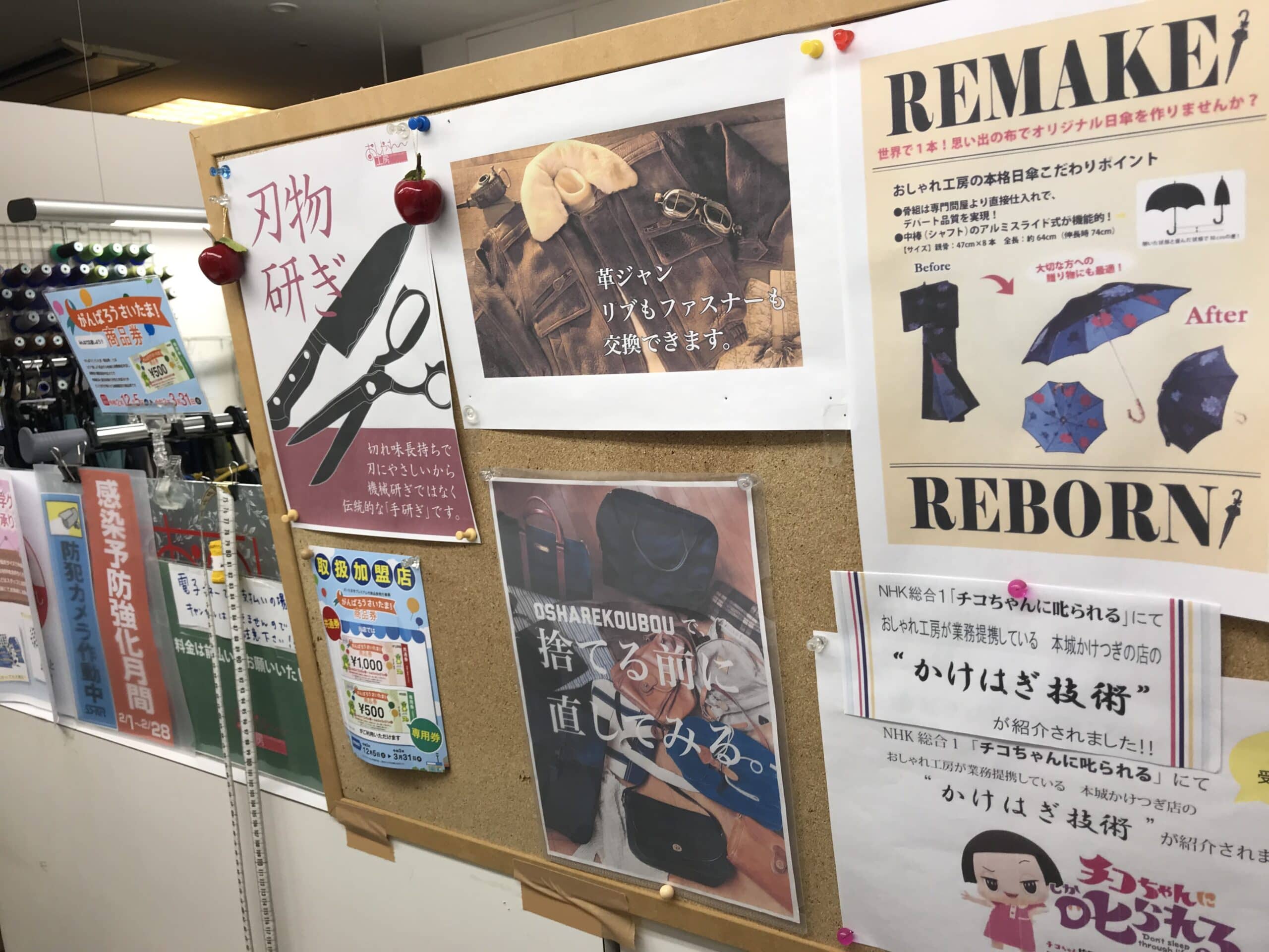 | 取扱サービス | 洋服のお直し バッグの修理 リフォーム リメイク 丸洗い 革製品 刃物研ぎ Tシャツプリント ユニバーサルファッション |